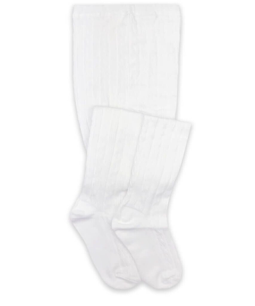Classic girls cable pattern tight that ranges in sizes from baby, infant, toddler to big girl. Knit with high quality cotton yarn that is soft with flat panty seams for extra comfort. Rib comfort waistband is comfortable and keeps tights in place for all day wear. Pairs great with dresses, skirts, rompers, bummies, shorties and shorts. Reciprocated heel and toe for extra durability so tights stay looking new.