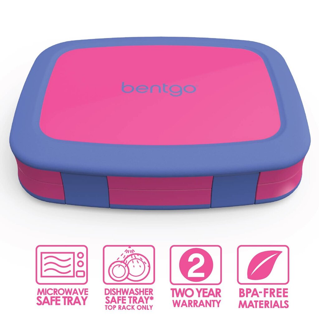 Give your child’s lunchbox a fun and stylish makeover with a bold, new pattern from Bentgo Kids. This one-of-a-kind, leak-proof Bentgo Kids lunch box features 5 compartments for fruit, veggies, dip, an entrée, and dessert. With so many perfectly portioned compartments, this Bentgo box for kids organically inspires parents to pack a more wholesome, balanced lunch for growing kids who are always on the go. This bento lunch box for kids features drop-proof, rubber-coated edges and a sturdy design that is ideal for active kids on the go. It keeps meals and snacks fresh and mess-free during transport and includes 2 kid-friendly latches that are easy for small hands to open and close.
