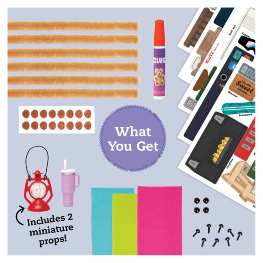Pack your bags for a cozy retreat! This bear family is ready for a vacation with all the amenities. First, twist extra-fluffy pipe cleaners into miniature bears, complete with beady eyes, noses, and soft felt paw pads. (Make up to 4 bears, with options for large and small sizes.) Next, dress them up with fashion-forward fleece scarves. Finally, put it all together with papercraft furnishings in a cabin scene, complete with miniature books, a tiny faux fire pit, and much more.