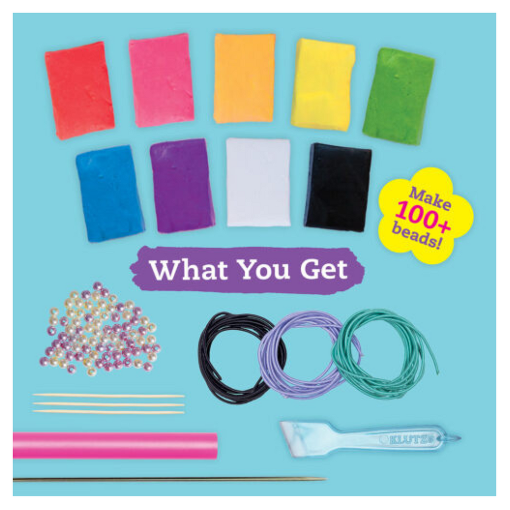 Using nine different colors of polymer clay, learn techniques for making more than 15 different types of beads, such as letter beads, canes, millefiori, and more! Includes a special tool for easily making the holes of the beads, sculpting accessories, faux pearl spacer beads, and two colors of elastic cording to string your finished pieces. Step-by-step instructions give crafters confidence to express themselves with custom creations.