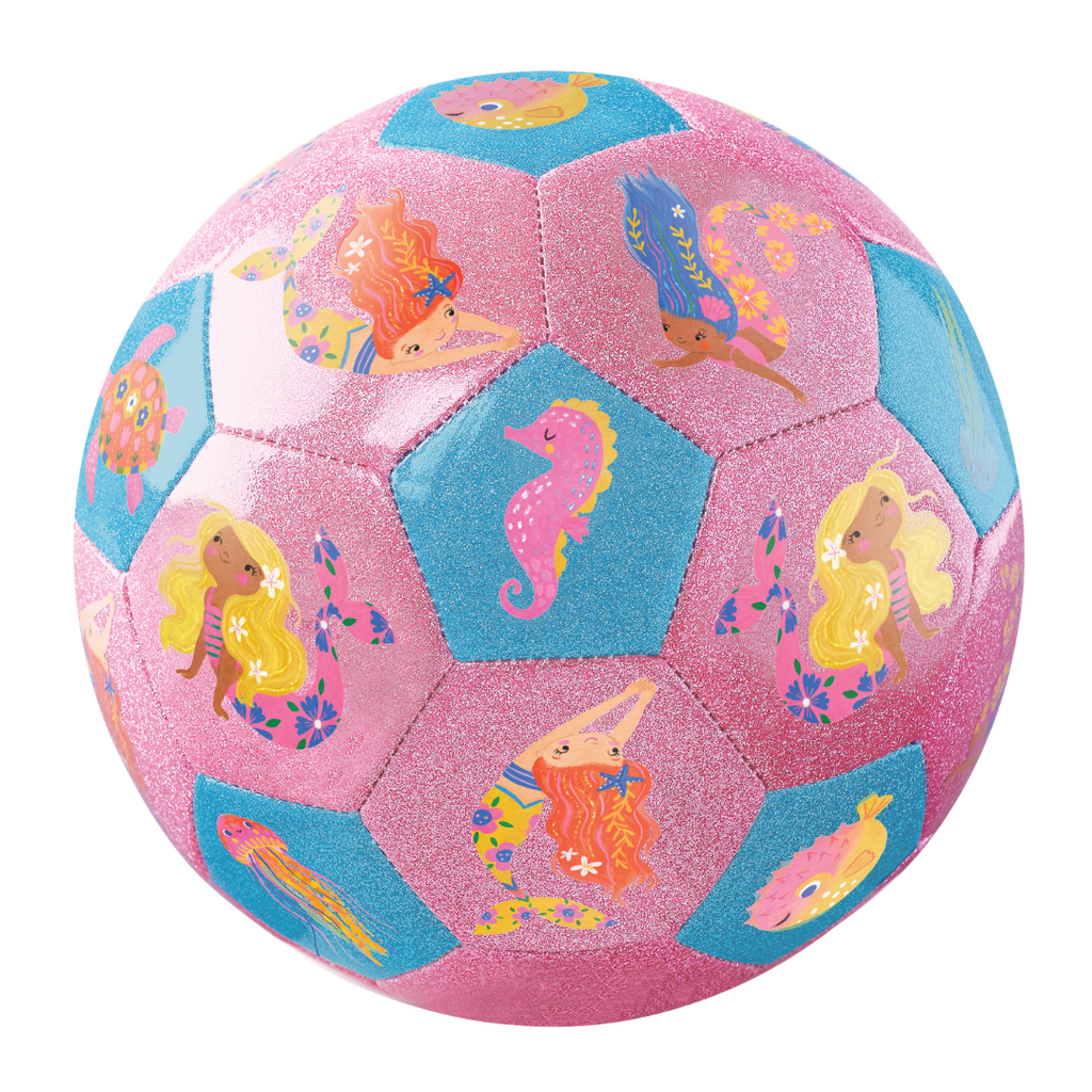Glittery Fun! Our Crocodile Creek Size 3 glitter soccer ball is the perfect gift for young children learning to play soccer! Size 3 is considered to be the introductory size for organized soccer activities and will help teach your child fundamental skills and encourage them to be involved in team sports. Our soccer balls are made from high-quality synthetic rubber with a rubber bladder, are 7" in diameter and are the perfect size for kids ages 4-8. Constructed with heavy-duty, synthetic leather and a sturdy rubber bladder, our soccer balls hold up to indoor and outdoor play.
