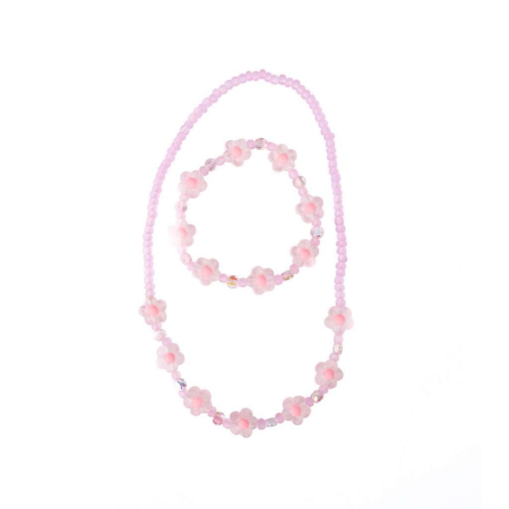 Add a touch of blooming beauty to any outfit with the Pink Crystal Blooms Necklace & Bracelet Set! This charming set features chunky pink flowers paired with soft-touch pink beads, creating a delightful combination of texture and sparkle.