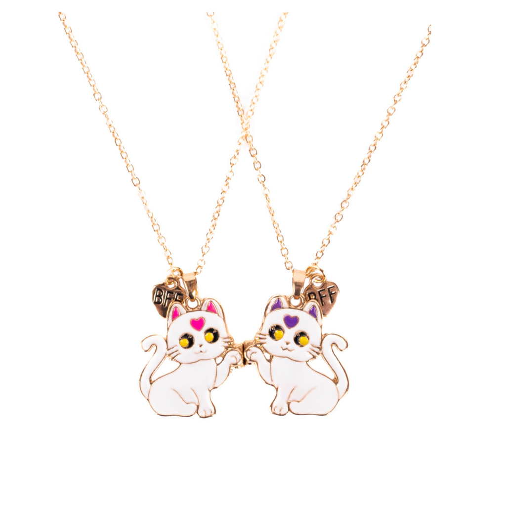 Our Smitten Kitten Tear & Share Necklaces come as a pair of white kitten pendants, each accented with pink or purple hues. When the necklaces come together, the kittens appear to hold hands, a charming symbol of friendship and togetherness. Lightweight and comfy for everyday wear, these necklaces are perfect for sharing with your closest friend or sibling.
