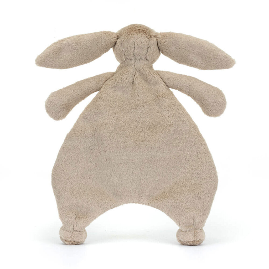 Irresistibly soft in a beige coloured fur made from recycled fibres, Bashful Beige Bunny Comforter features our beloved Bashful Bunny signature long lop ears, a pink suedette nose and embroidered eyes. Designed with an un-stuffed body yet delicately squashy paws and bobble feet, making it easy for little hands to grab hold of and comfort themselves.