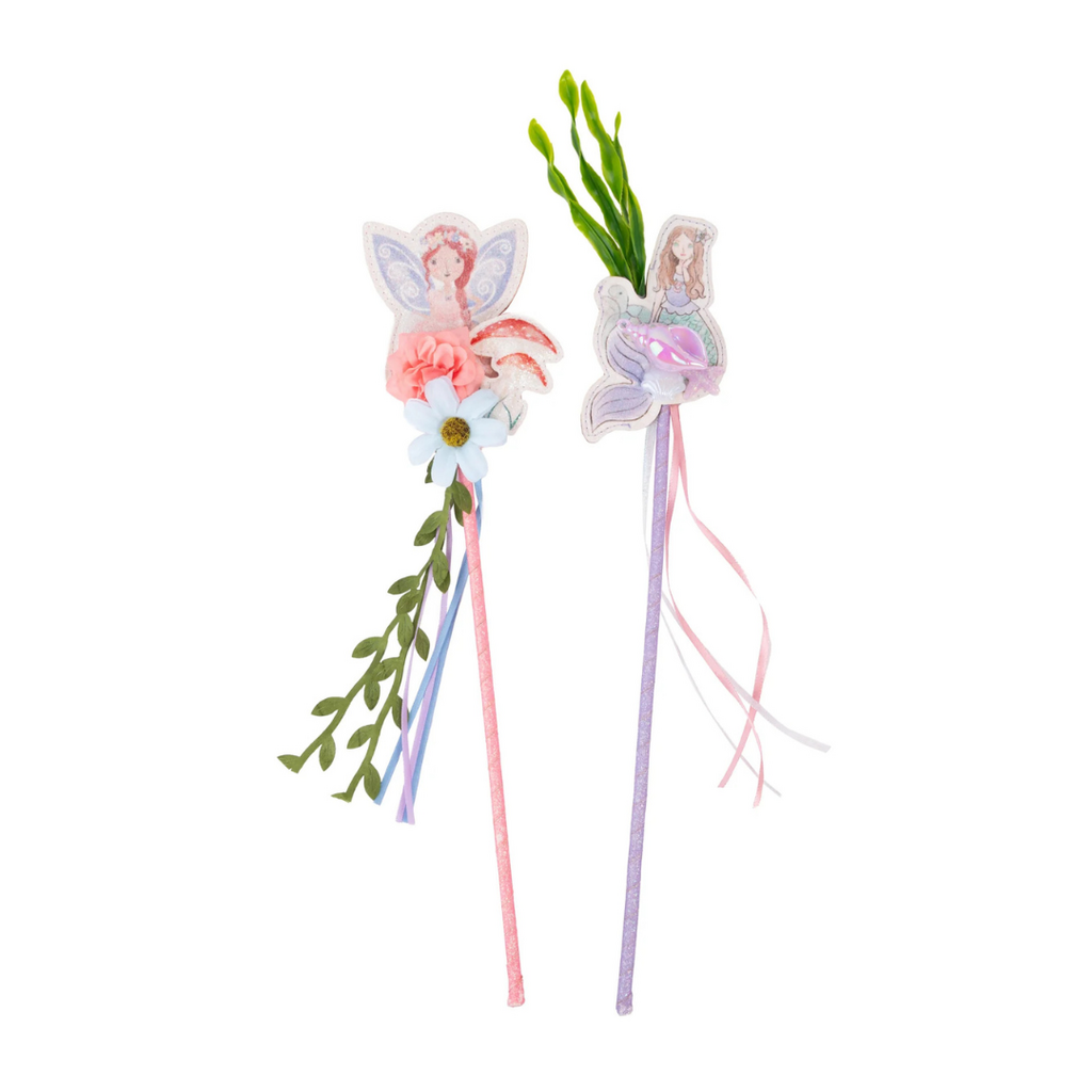 park imagination with our enchanting Mythical Creature Wands, Assorted, featuring two whimsical designs perfect for every little dreamer! Each wand is crafted with sparkling details, flowing ribbons, and soft greenery that dance with every wave.