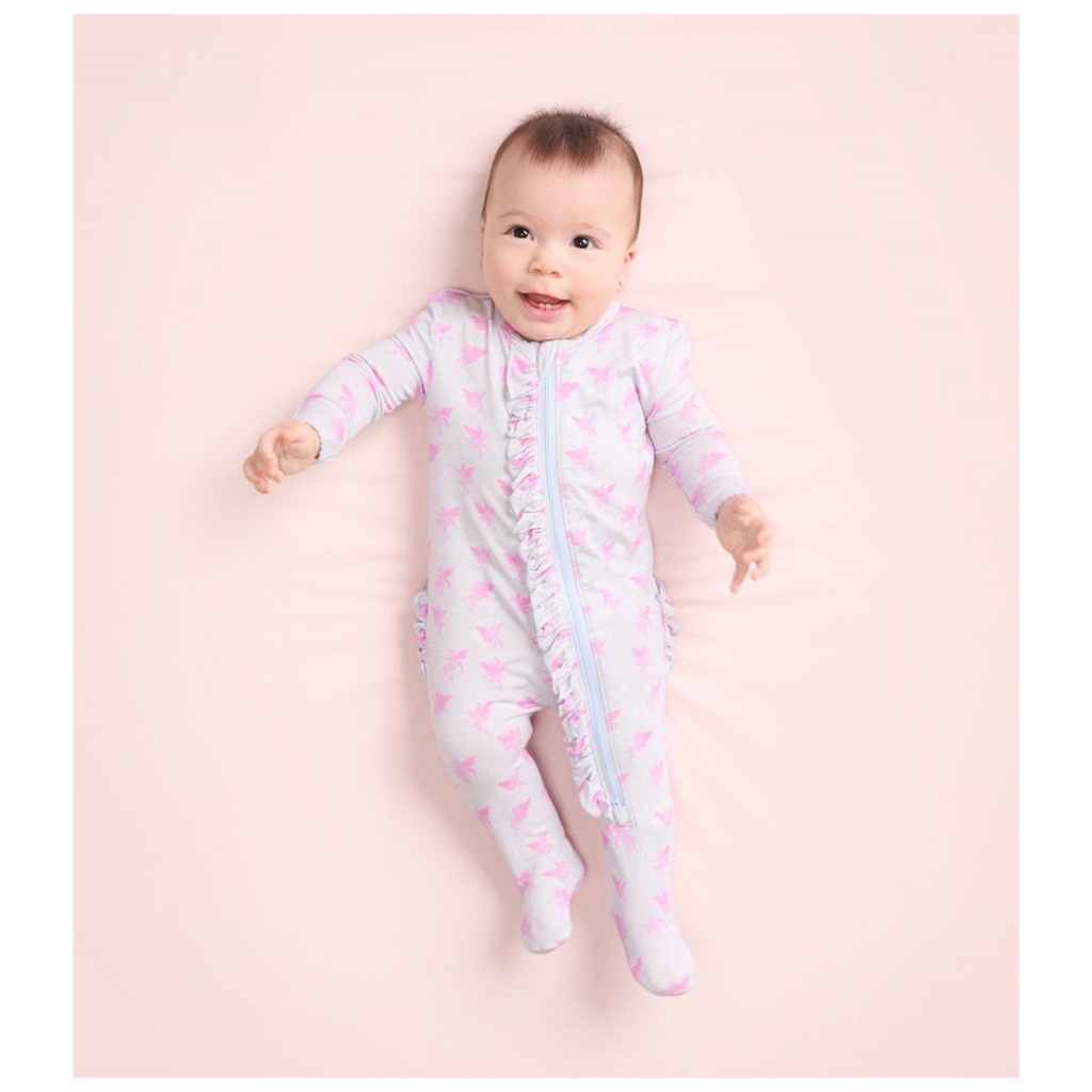 Drift into magical dreams with the Baby Girls Twinkle Fairies Footed Sleeper! Crafted from bamboo and elastane, this sleeper is soft, breathable, and designed for all-night comfort. Featuring whimsical fairy prints, it’s an enchanting addition to her nighttime wardrobe.
