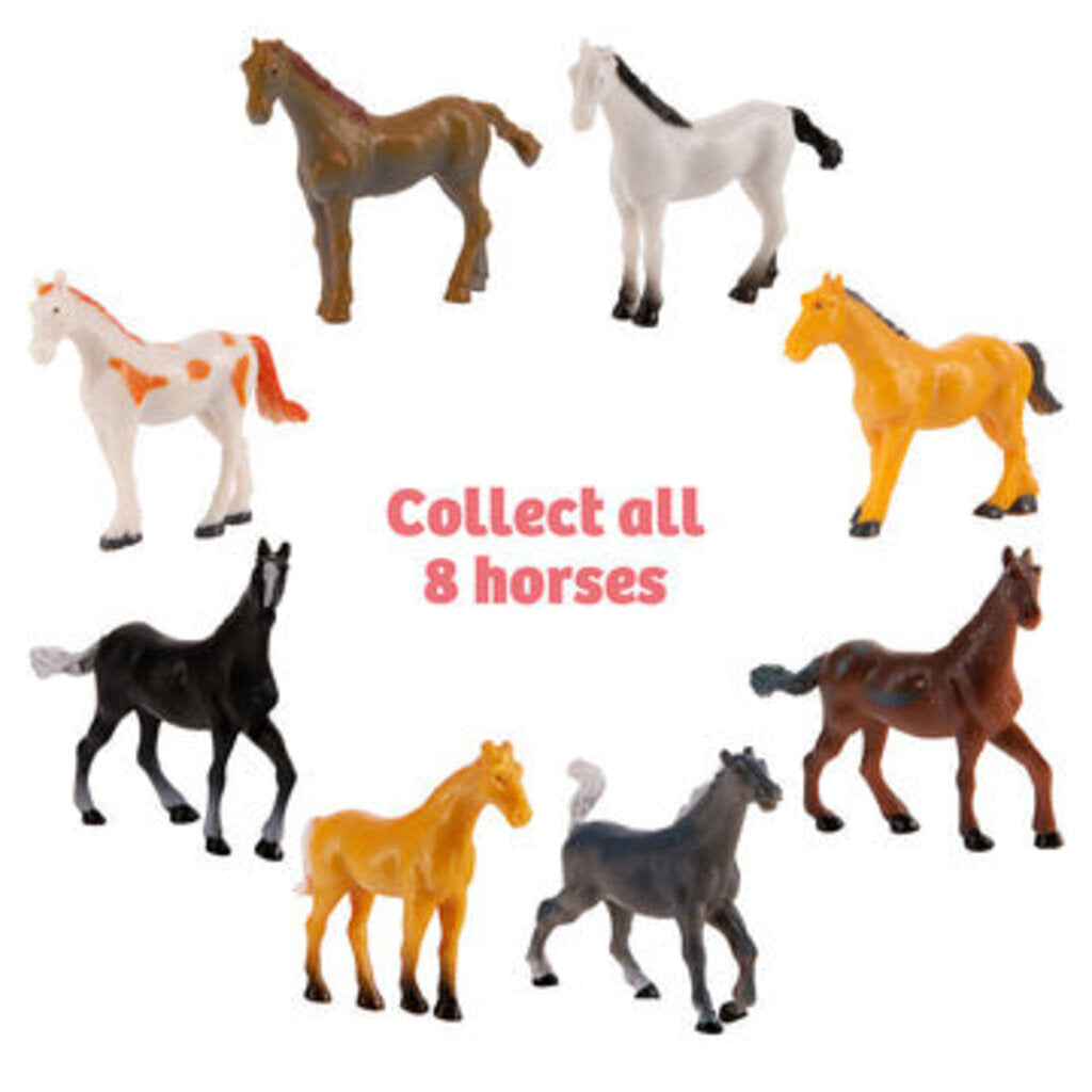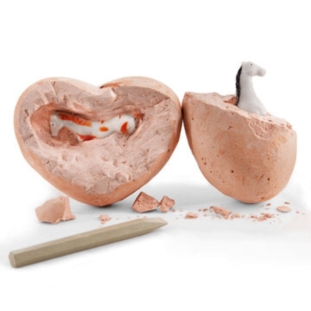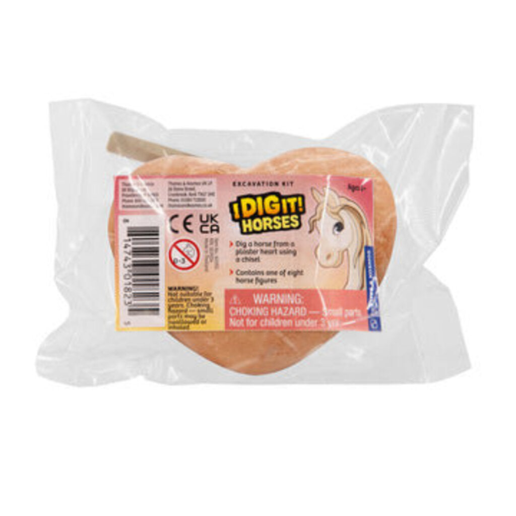 We “HEART” horses!Each of these pink plaster hearts holds one plastic horse figurine. Use a small chisel tool to find the horse hiding inside the heart. The hearts are blind-packed, so it’s always a surprise which of the eight horses you will get! Will it be a bay, chestnut, dun, gray, or pinto?