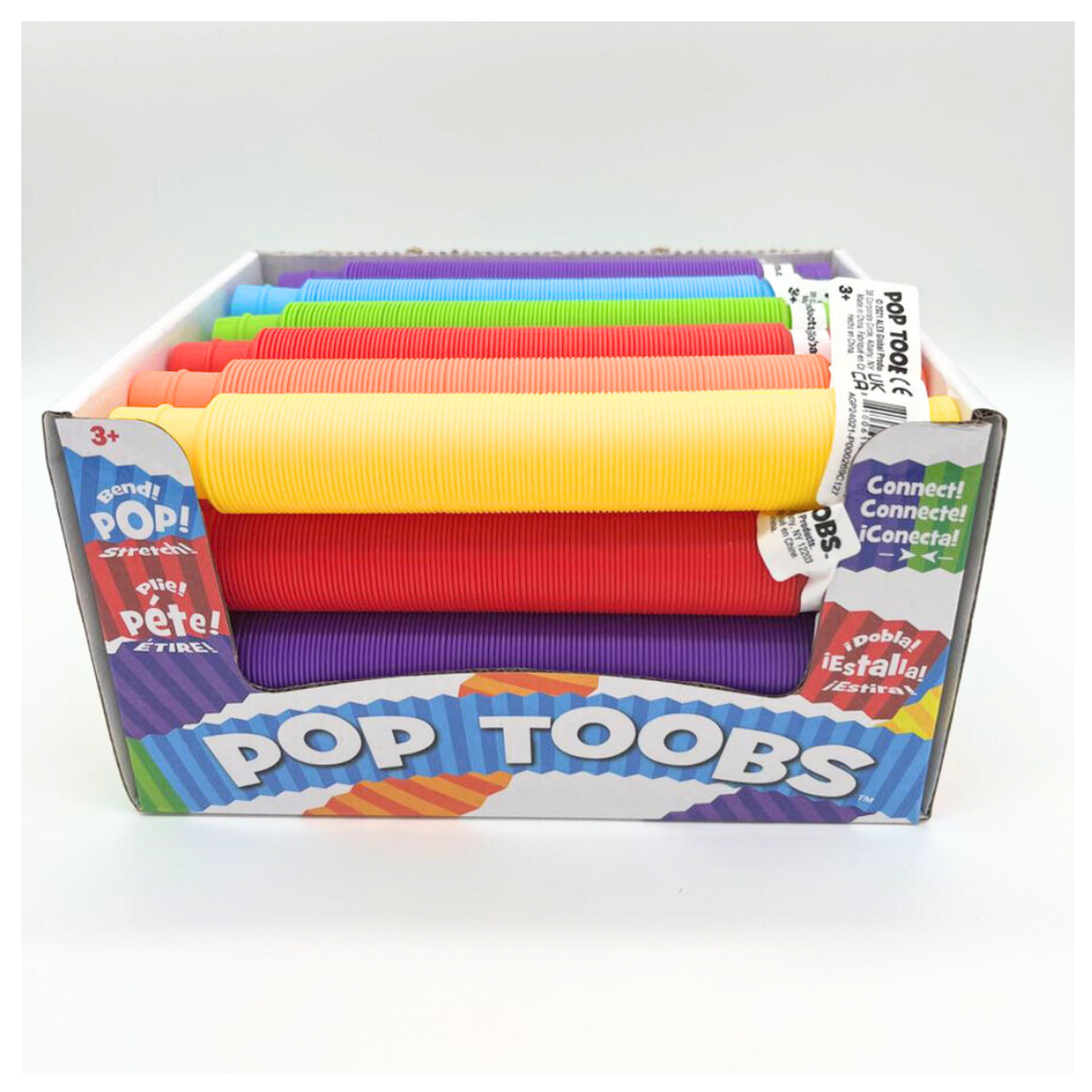 A colourful, bendable sensory toy. Great for tactile play and fine motor skills. Play with one on its own or attach multiple toobs for added fun. Approx. 6 inches long.