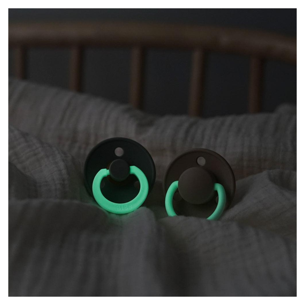 Bibs Colour 2pk Pacifier Natural Rubber Round, Black Glow Size 1