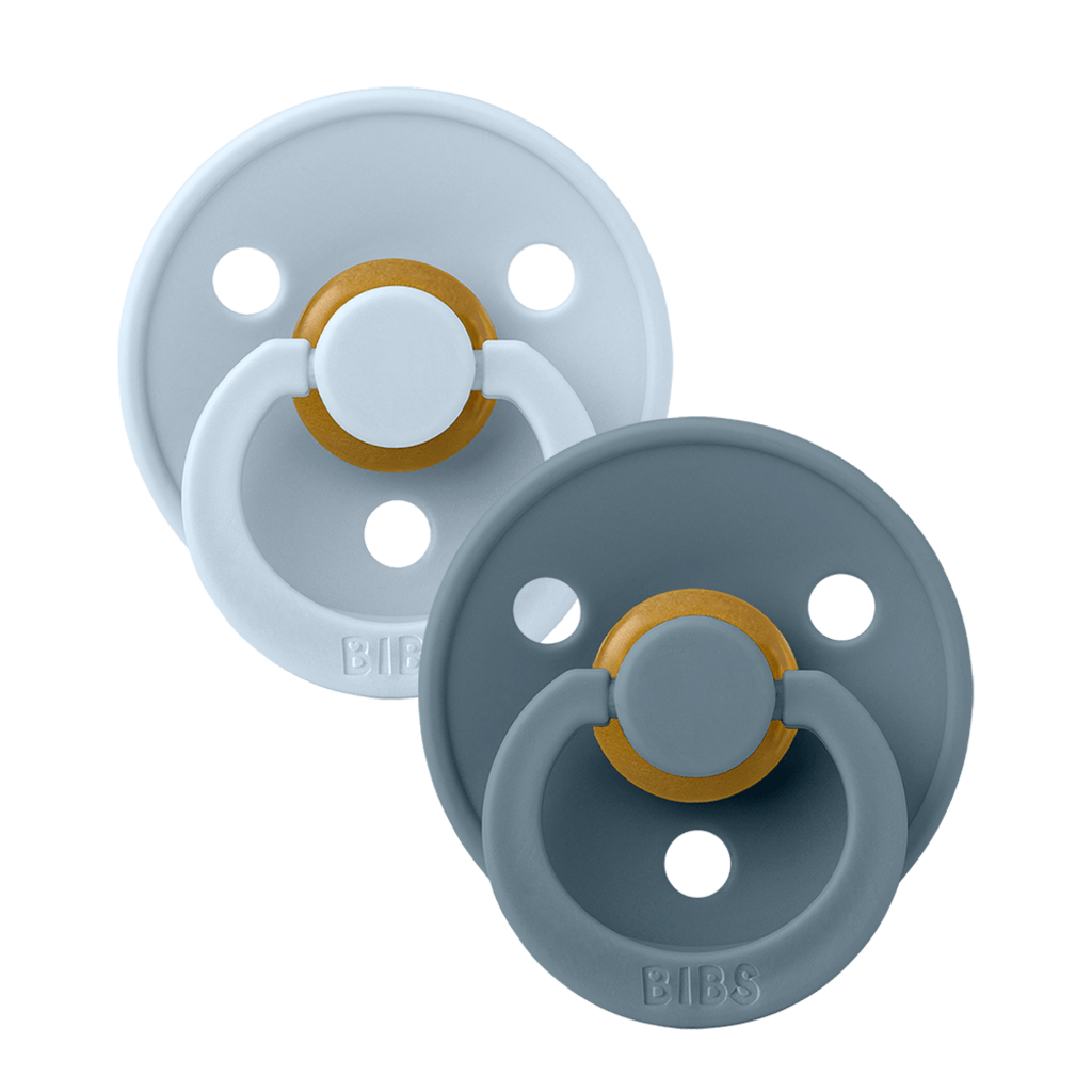 Bibs Colour 2pk Pacifier Natural Rubber Symmetrical, Baby Blue/Petrol Size 1