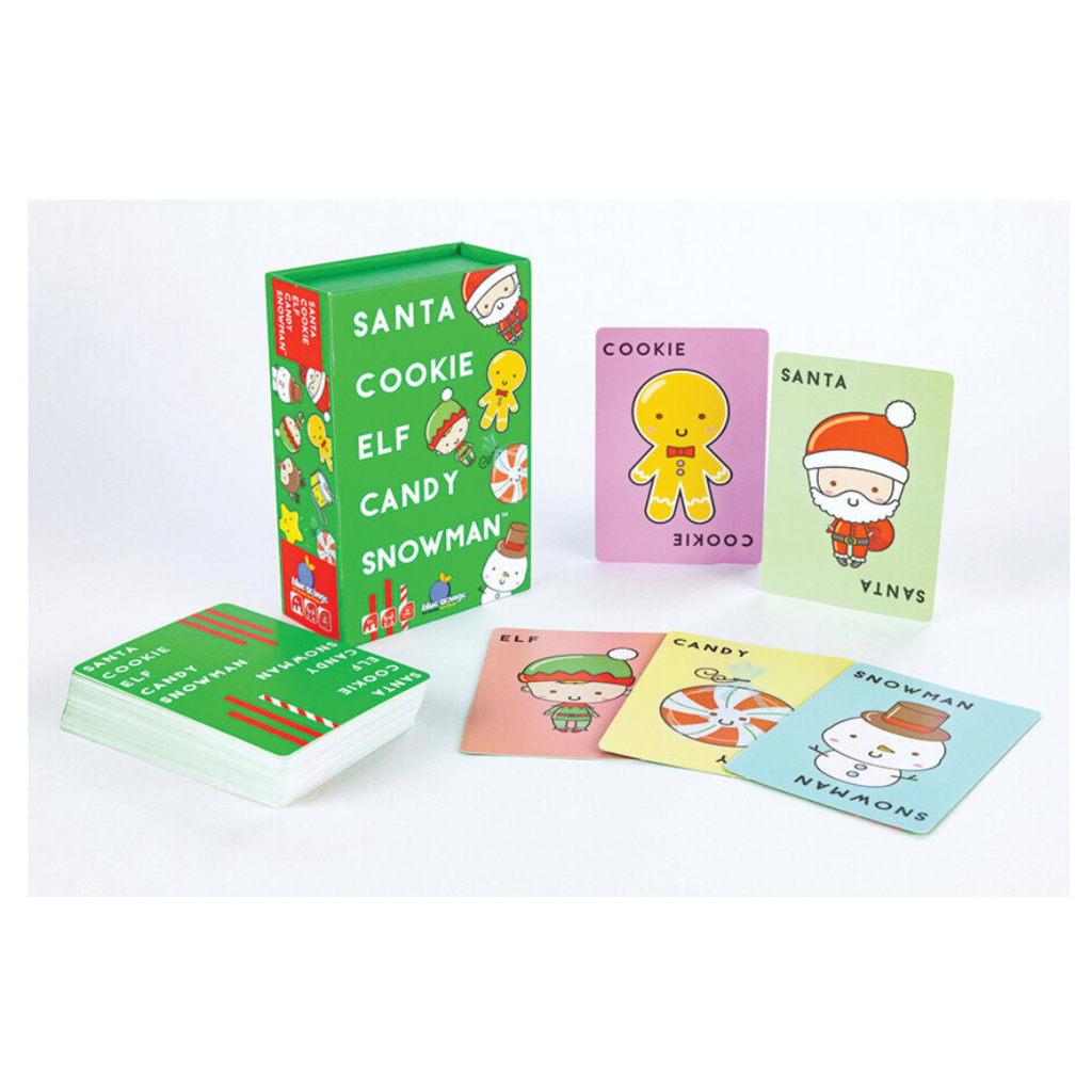 The holiday version of everybody’s favorite game! The cards are dispersed evenly amongst players. Each player takes a turn flipping a card while saying one of the five words in the title (in order). If the card flipped matches the word the player says, every player slaps the pile. The last person to slap the pile takes the cards. The winner is the player to lose all their cards first.