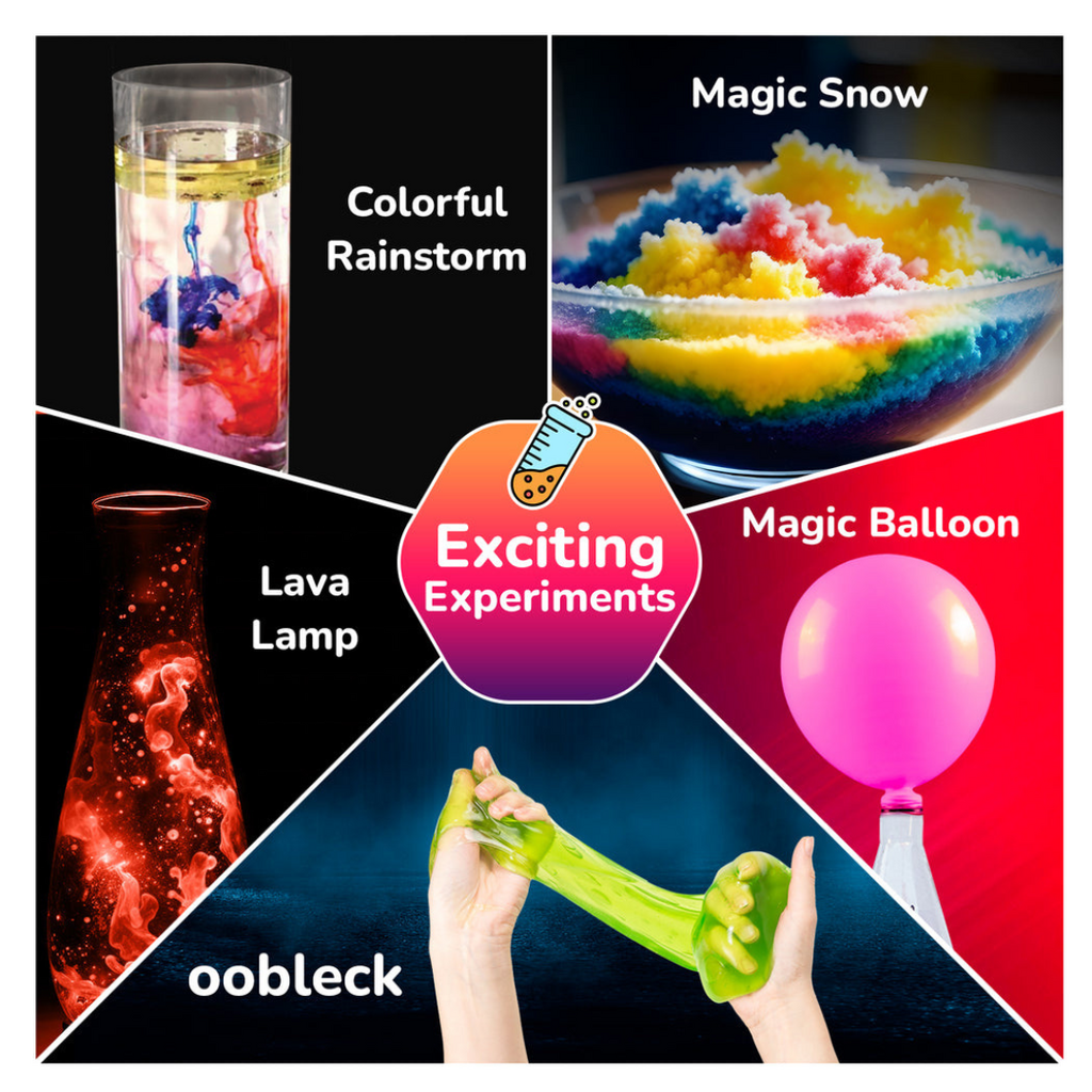 - Discover fundamental concepts of chemistry and physics through engaging experiments such as colorful rainstorm, magic snow, lava lamp, and more.