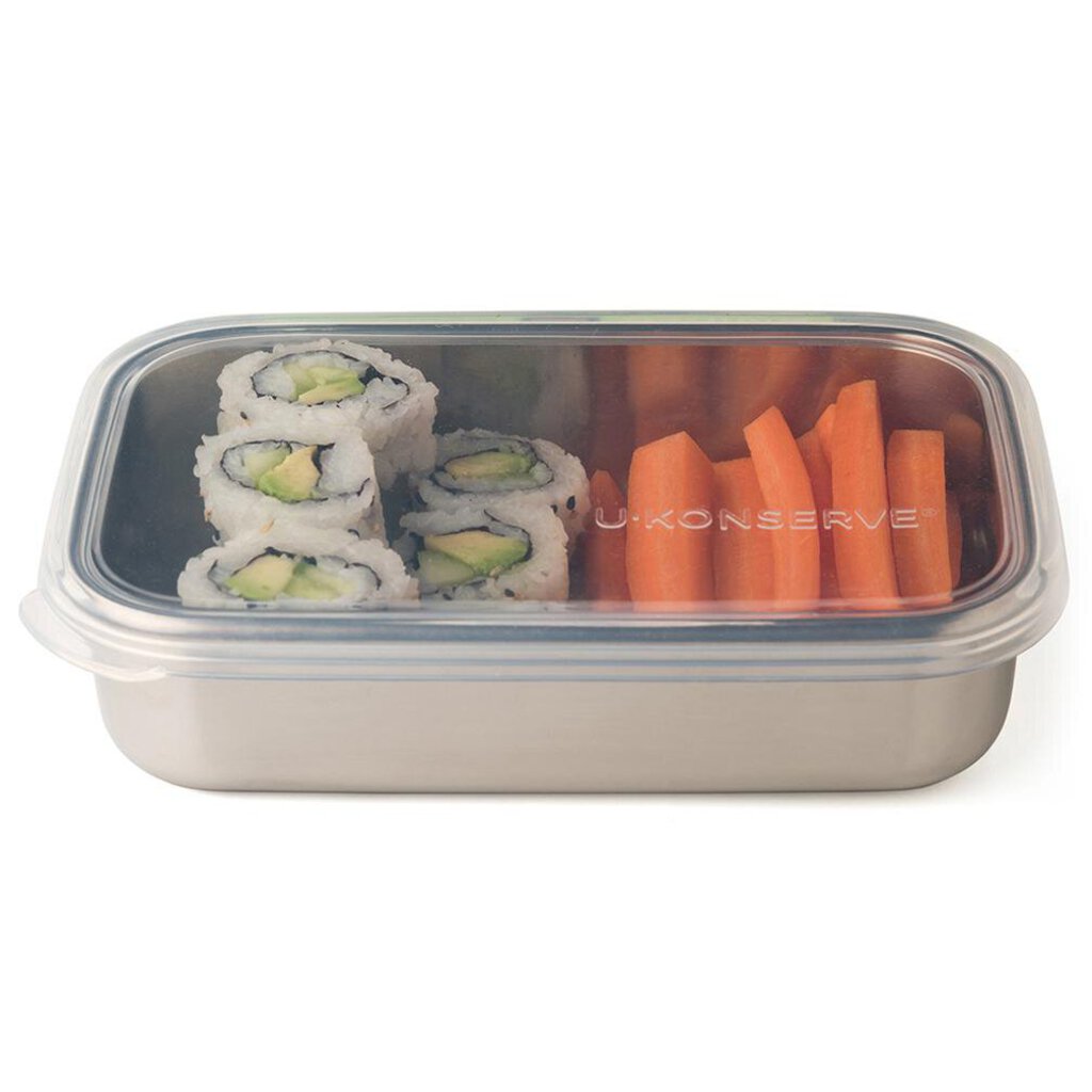 Our trusted stainless steel rectangle containers now come with plastic-free, clear-as-glass silicone lids! Perfect waste-free solution for kids lunches, takeout, picnics, travel, outdoor adventures and bulk shopping. Pack snacks, lunches and main meals while reducing single-use packaging. Our rectangle containers are also ideal for kitchen organization, pantry makeovers, meal prep and family leftovers.This reusable bento-style lunchbox is versatile enough for many food-storage needs at home and on the go, while saving trash from our ever-growing landfills. Flexible silicone lids are easy for little hands to open, and the leak-proof feature keeps spills at bay. Our new non-toxic stainless steel and silicone combination make these lunchboxes the best zero-waste solution for you and the planet.